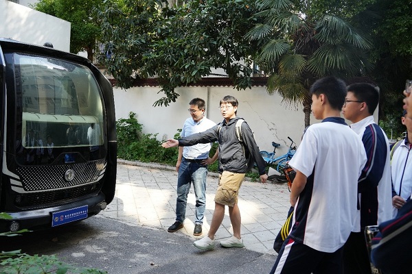 在船舶远程驾控平台和无人巴士展示区,师生们见证了现代智能交通技术的飞速发展。通过模拟系统,了解内河船舶远程驾控的发展现状及未来发展趋势;通过上手控制缩比模型车,了解无人巴士的发展现状,对车辆自动驾驶有了新的认识。