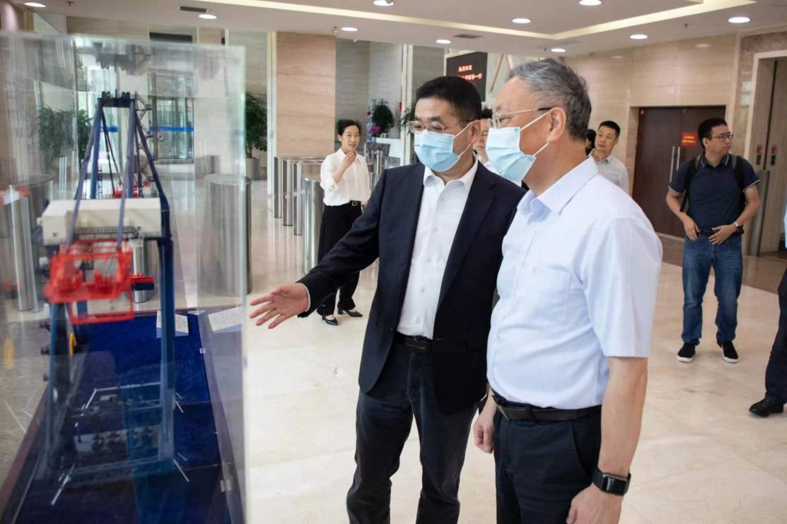 严院士、张院长在刘成云董事长陪同下,首先参观了振华重工一楼产品展厅。
