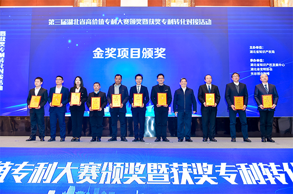 据悉,第三届湖北省高价值专利大赛设金奖、银奖和优秀奖奖项,全省共300多个项目报名参赛。经过“初审、复审、决赛”,最终49个项目荣获金、银奖,我校共有2个项目获得金奖,是获得金奖最多的高校。