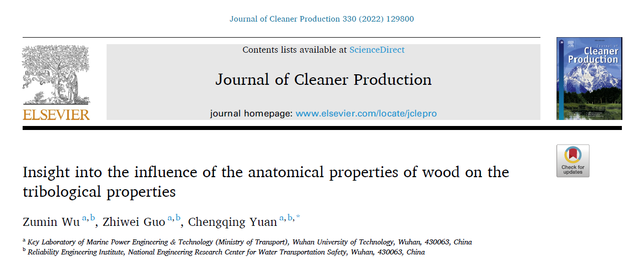 成人动作片 船舶摩擦学科研团队合作撰写的学术论文“Insight into the influence of the anatomical properties of wood on the tribological properties”被环境科学领域国际顶级学术期刊《Journal of Cleaner Production》发表。该期刊位于JCR的Q1分区(18/274),中科院1区,影响因子9.297。
