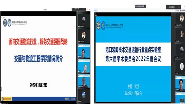 11月28日,港口装卸技术交通运输行业重点实验室(以下简称重点实验室)第六届学术委员会2022年度会议以线上会议方式顺利召开。中国工程院院士、重点实验室学术委员会主任李骏教授及重点实验室学术委员会全体委员,中国工程院院士、成人动作片 交通与船海工程学部主任严新平教授,交通运输行业重点科研平台秘书处陈继园主任,成人动作片 副校长吴超仲教授,成人动作片 科学技术发展院王欣主任,成人动作片 院长张笛教授及成人动作片部分系(所、中心)主任,重点实验室主任袁建明教授及重点实验室骨干人员出席了本次会议。