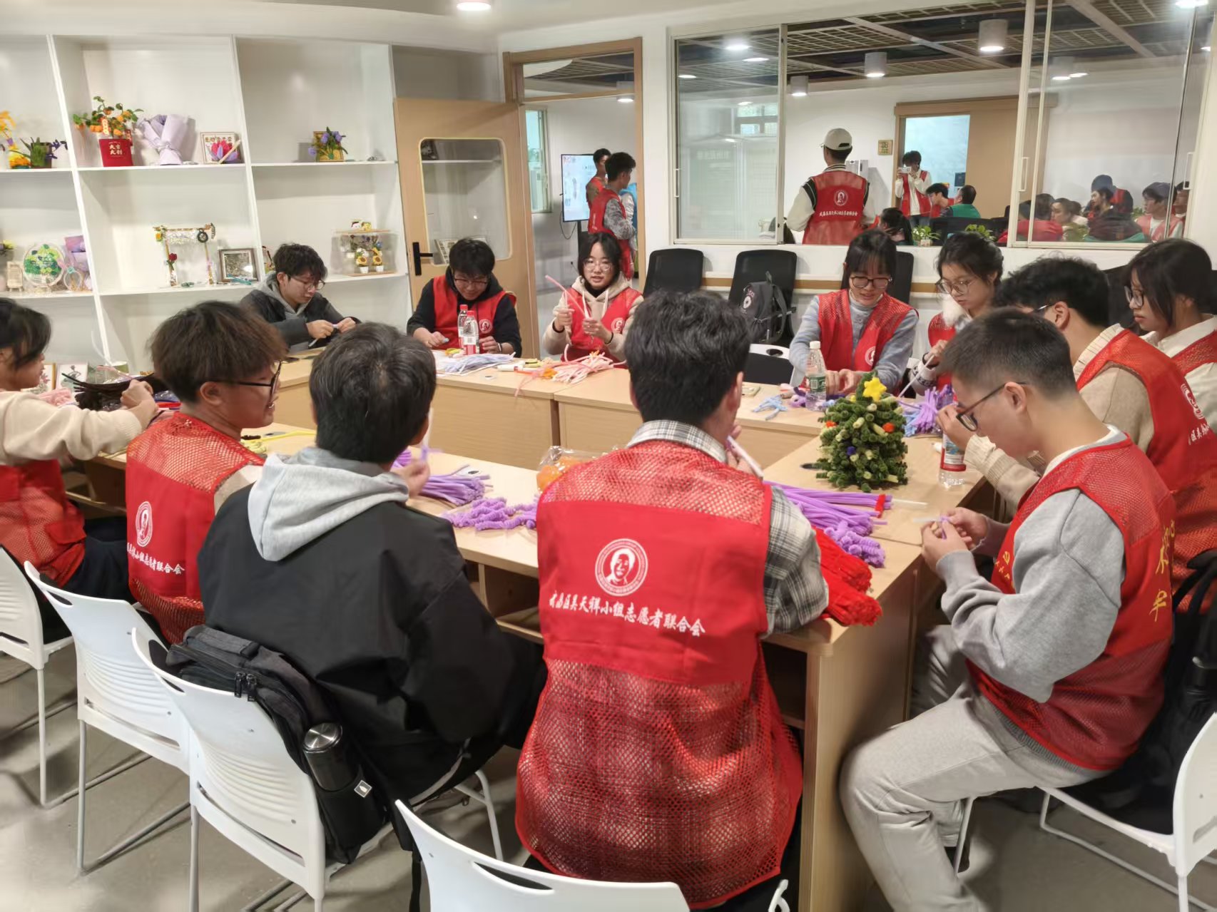 活动伊始,手工创作环节正式展开。志愿者们提前准备了彩色扭扭棒、电胶枪等材料,参照教学视频分步制作,从扭折固定到细节装饰,皆细致处理。在共同努力下,一件件形态各异、色彩鲜艳的扭扭棒圣诞树相继完成。每件作品均凝聚着参与者的巧思与诚意,现场气氛融洽。作品完成后,众人手持成果合影留念,脸上洋溢着成就与喜悦。