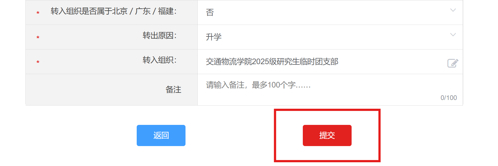 1.转接申请发起后,首先由当前所在团支部管理员审批,同意转出后,成人动作片 交通物流成人动作片团委将负责审批同意转入。