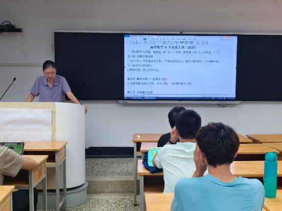 为帮助机设2405班同学高效备战高等数学期末考试,6月10日机设2405班邀请授课老师陶红在航海楼506为同学们进行了系统的复习备考指导。本次复习内容涵盖考试大纲解析、各章重点内容梳理、常考知识点及题型分析,助力同学们明确复习方向,提升备考效率。