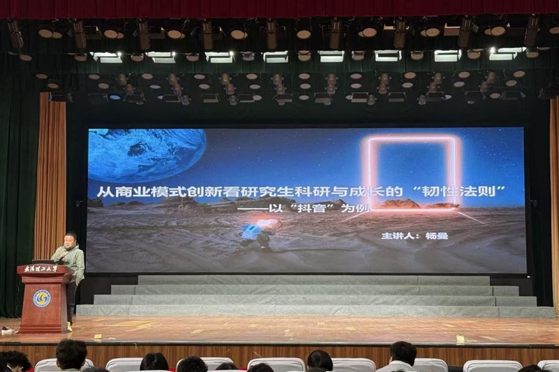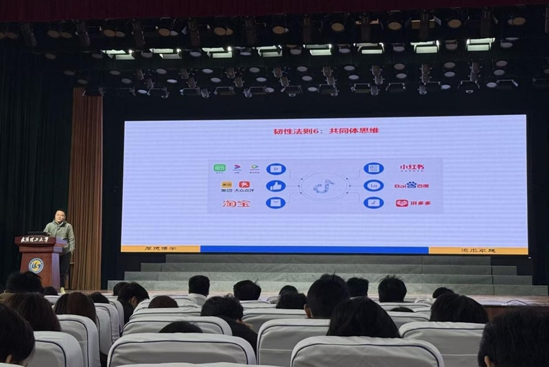针对研究生普遍关切的“未来不确定、未来怎么办”这一核心困惑,杨老师以抖音商业模式为鲜活案例,深入浅出地分享了助力科研与成长的六条韧性法则——他提出,研究生在学术道路上应树立主角思维,主动掌控科研节奏;秉持聚焦思维,集中精力攻克核心问题;培养创新思维,打破固有认知局限;运用精准思维,提升科研效率与质量;具备提前思维,做好规划应对未知挑战;强化共同体思维,学会协作共赢。杨老师结合商业模式中的成功经验,为研究生提供了可落地、可实践的思维方法,帮助同学们从全新视角看待科研中的困难与成长中的迷茫,引发现场学子广泛共鸣。