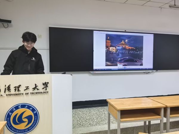 分享会伊始,几位分享同学依次上台,结合自己的旅游经历、实拍照片与真实感悟,用生动有趣的语言,为大家带来了一场沉浸式的“云旅游”体验,现场氛围轻松热烈,同学们认真聆听、不时互动,沉浸在各地的美景与文化之中。
