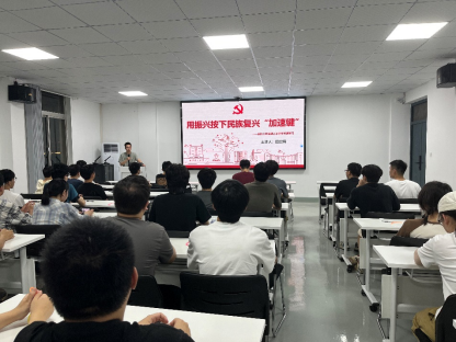 最后,会议进入了支部书记讲党课环节。田纪伟老师以“用振兴按下民族复兴‘加速键’”为主题,为大家带来了一场深刻且富有启发性的党课。田老师深入阐述了民族复兴的重大意义,分析了当前我国在实现民族复兴道路上面临的机遇与挑战,着重强调了乡村振兴、科技振兴等在加速民族复兴进程中的关键作用。他鼓励全体党员同志要以饱满的热情和昂扬的斗志,积极投身到相关领域中,发挥自身专业优势,为实现中华民族伟大复兴贡献自己的力量。