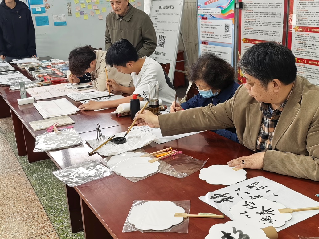 上午830分,活动正式拉开帷幕。二楼大厅内人头攒动,各活动摊位前很快排起了长队。书法区弥漫着淡淡的墨香,同学们提笔挥毫,在空白扇面上留下或工整娟秀、或洒脱奔放的字迹,一件件亲手绘制的扇面作品为活动增添了浓郁的传统文化韵味。