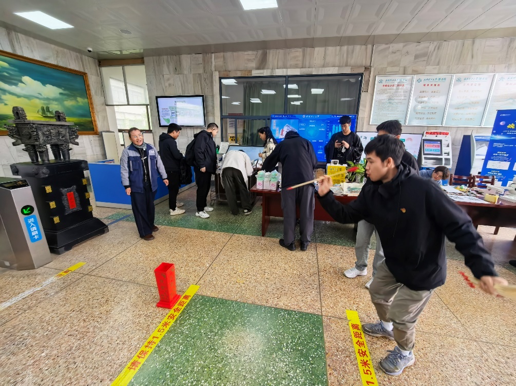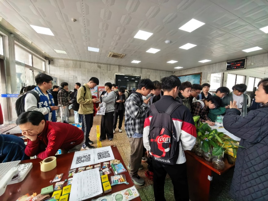 对弈区同样热闹非凡,同学们轮番与智能机器人展开棋艺对决,科技与传统智慧碰撞出独特的火花,引来阵阵喝彩。投壶区内欢声笑语不断,同学们屏息凝神投掷箭矢,成功命中者从工作人员手中赢取精美奖品,现场氛围轻松欢快。借阅区也吸引了众多爱书之人,在图书馆借书的同学纷纷领取学校定制的校园周边礼品。