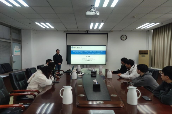 11月22日,成人动作片 胡海洋博士在航海楼806会议室组织了一场TRB学术会议分享会,进行了题为《Consensus Control with Incomplete Vehicle Information for Virtual Platoons at Autonomous Intersection》的成果汇报。该报告分析了当前非信控交叉口车辆编队通行的控制安全问题,并基于这一问题设计了新的车辆编队控制器,以保证非信控交叉口队列安全通行。另外,他还向同学们介绍了本次会议的最新研究进展,并分享了投稿经验和与会心得。