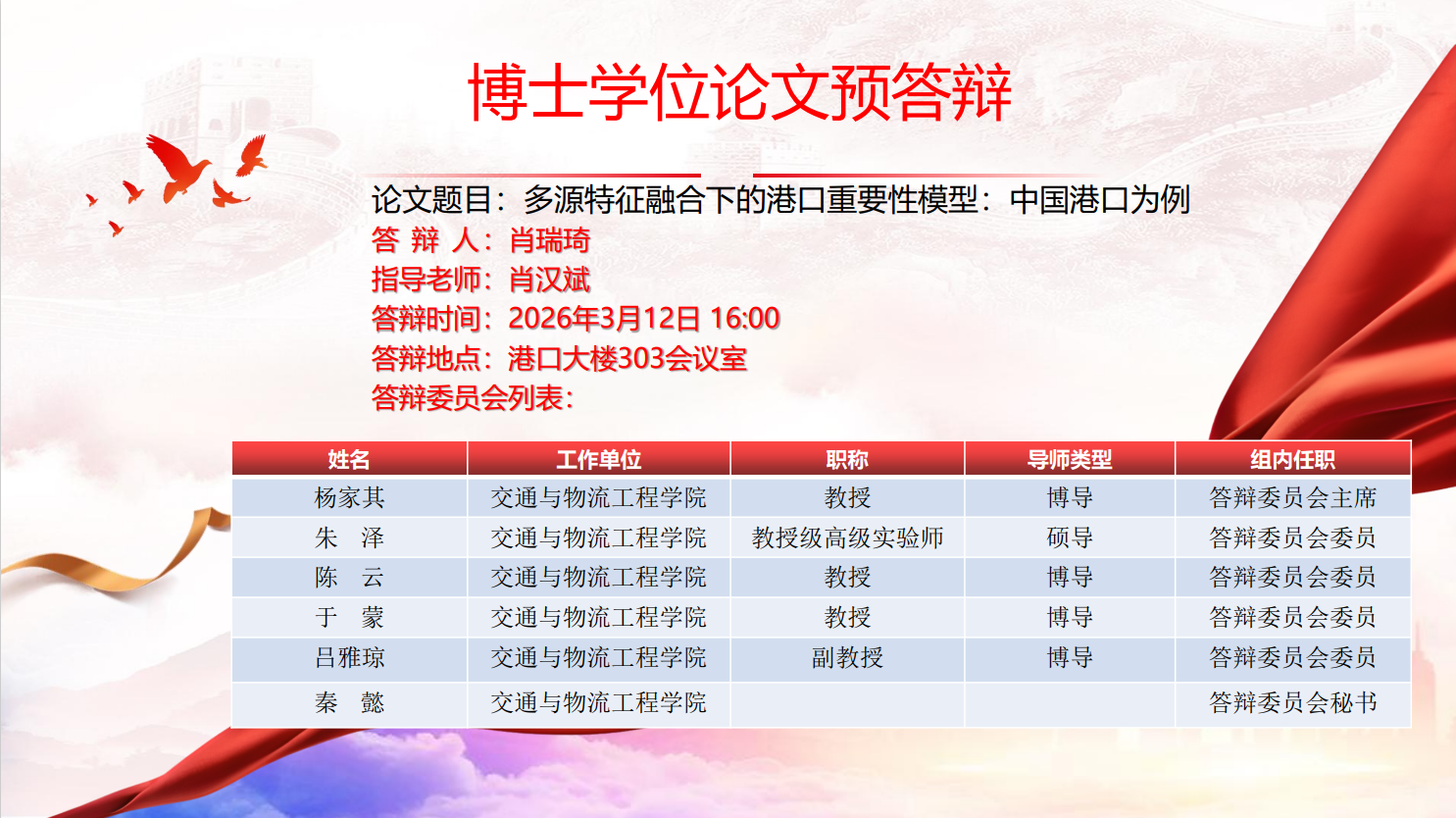 博士学位论文预答辩公告